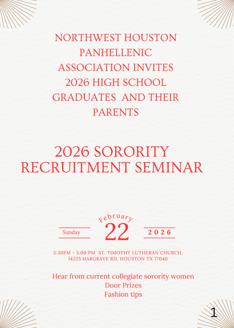 The Panhellenic’s goal is to assist all Northwest Harris County potential members in having the best recruitment possible resulting in the maximum number of girls becoming members of a sorority.